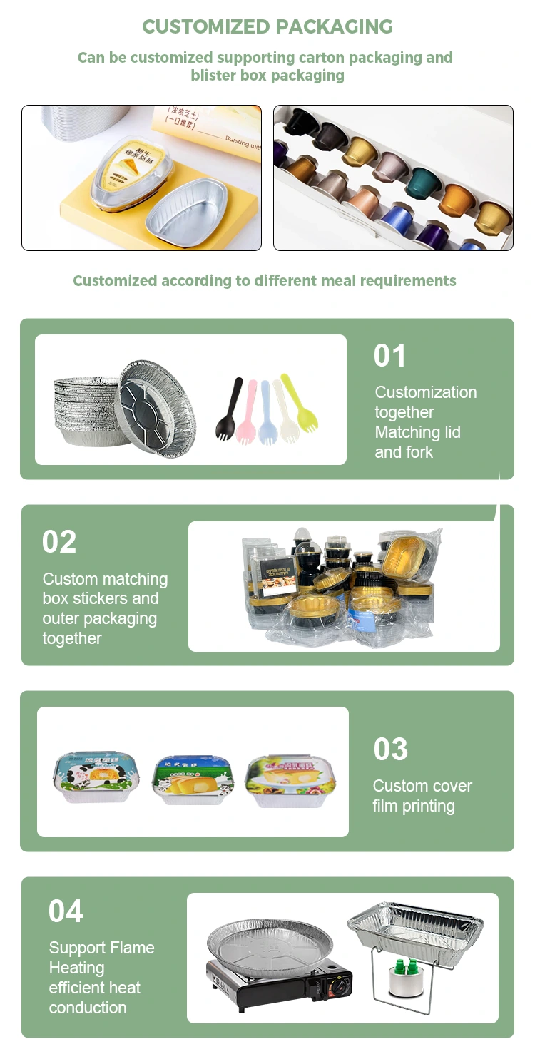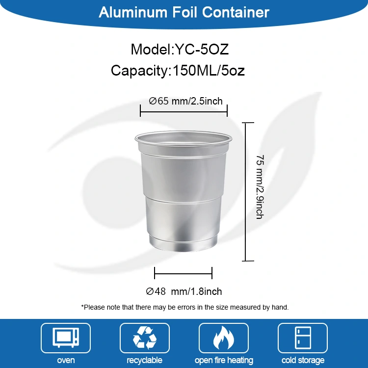 Scénarios de restauration et de vente au détail : les cafés, les salons de thé au lait et les magasins de jus peuvent être utilisés pour conserver de petites boissons et des échantillons. La capacité exquise et l'éclat métallique améliorent la texture de la marque ; Les glaciers et les magasins de desserts peuvent être utilisés comme mini tasses à dessert pour transporter des boules de crème glacée, de petites portions de mousse, etc. Le matériau en aluminium peut mieux maintenir la basse température et prolonger la durée de conservation du goût. Les capacités de production professionnelles de Yunchu Aluminum Foil peuvent prendre en charge la personnalisation des LOGOs de marque sur le corps de la tasse, aidant ainsi les commerçants à renforcer la reconnaissance de la marque.