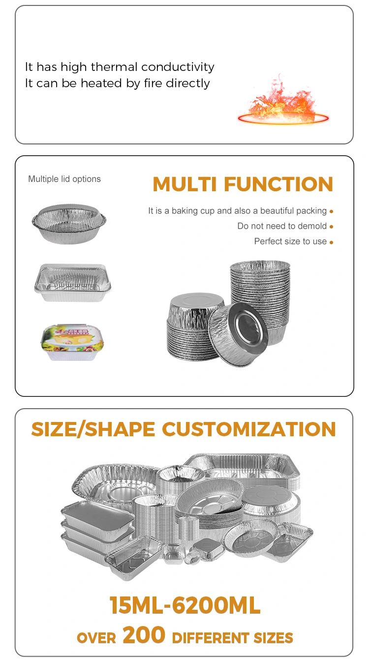 ​Yunchu aluminum foil supplier Cake baking cup silver Aluminum Foil Food Container baking and shaping two-in-one, multi-use aluminum foil container, baking, barbecue Wide range of use, can be heated over open flame and resistant to baking, instead of pots, baking shops, homes, food factories can be applied, small size to enjoy baking life, can be used as a baking mold, integrated molding does not need Pour être plié et façonné, une utilisation fantaisie, un moule polyvalent, du pudding, du gâteau, des tartes aux œufs, des œufs cuits à la vapeur, du barbecue, etc., de l'anti-assistant et facile à démollir, pas facile à brûler, il peut être libéré à l'intérieur de petites collations, de glissement, de glissement de flamme ouvert et peut améliorer la résistance au glissement de glissement, et une variété de couleurs peut être personnalisée.