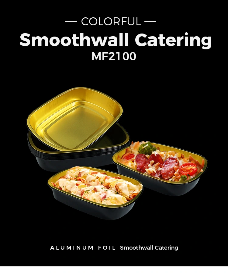 ​Yunchu Aluminum Foil Supplier Disposable black gold catering Rectangular Aluminum Foil Containers is suitable for large-volume catering and takeaway industries, especially suitable for baking, catering chains and self-service chains and other scenarios, the product is made of 8011 food-grade aluminum foil material, the height is low and suitable for some turkey, grilled fish, stew and other foods with many Les ingrédients à placer peuvent être utilisés avec le couvercle d'étanchéité en aluminium et le couvercle entièrement transparent entièrement transparent, avec d'excellentes performances d'étanchéité, une résistance à haute température et une fonction de prévention de l'huile et des fuites. Il est largement utilisé dans divers scénarios tels que l'emballage alimentaire, le chauffage, la réfrigération et la livraison à emporter. La surface adopte une conception de paroi légère, avec une apparence plate et lisse, ce qui est pratique pour le scellage automatique du film scellé par la chaleur, améliorant ainsi l'efficacité de l'emballage.