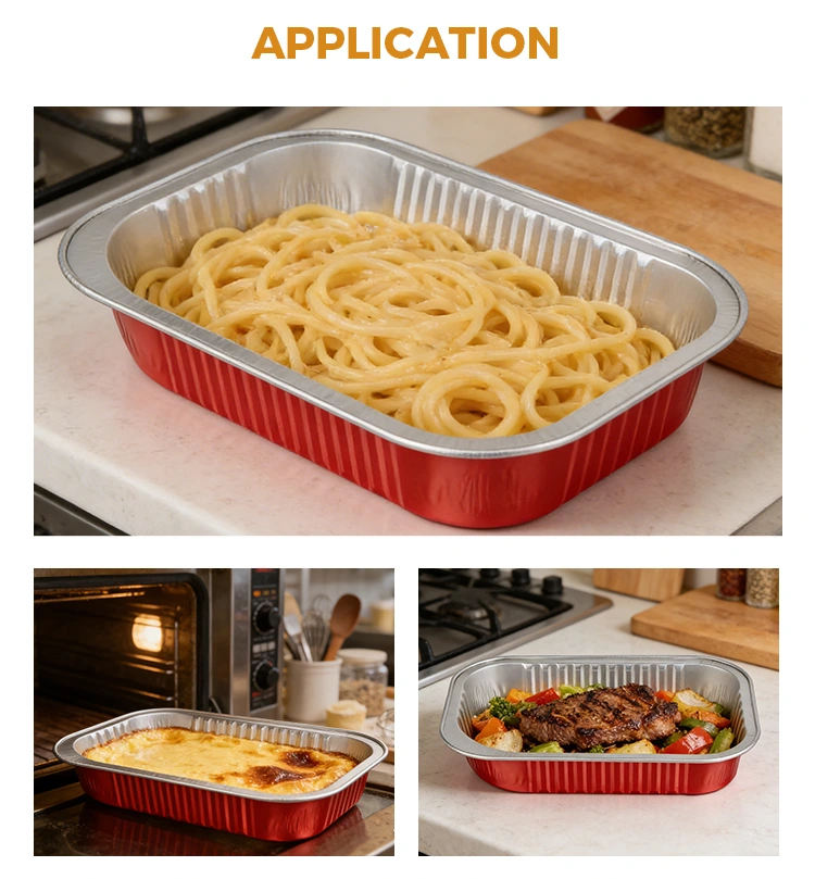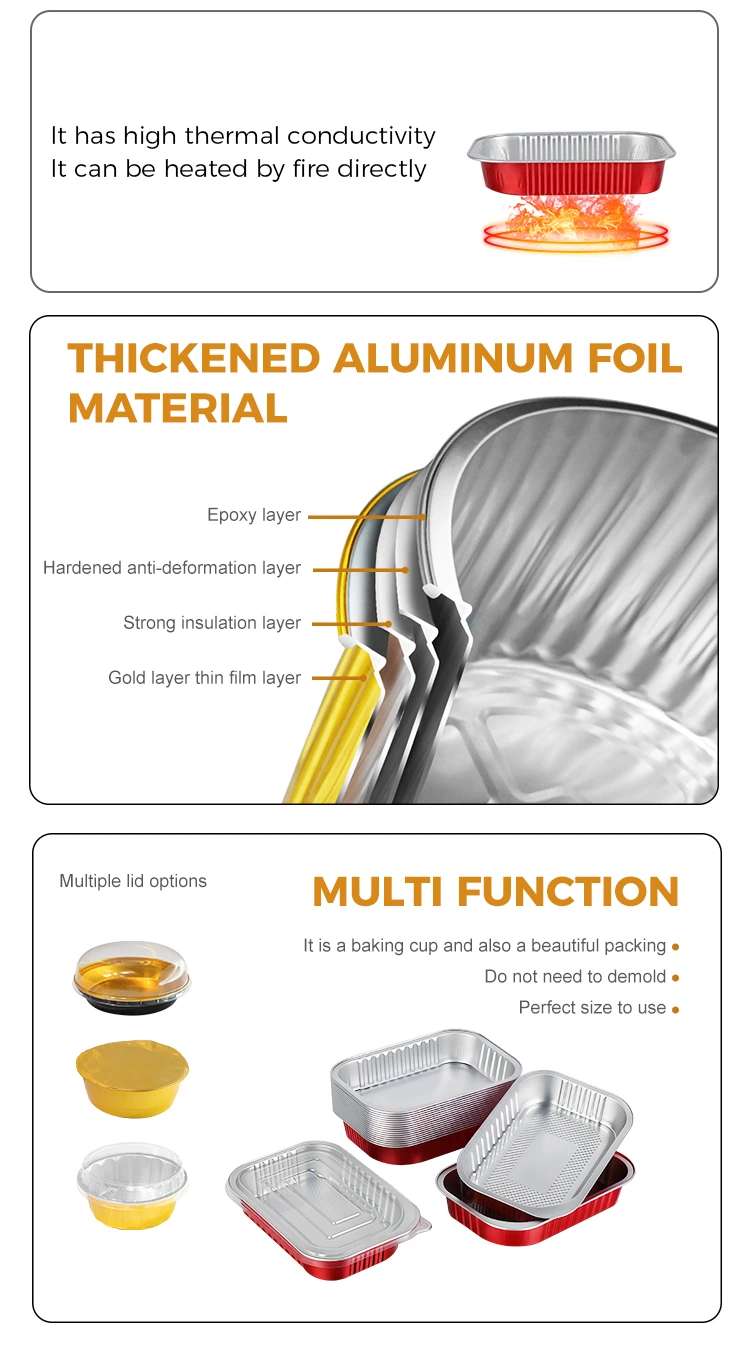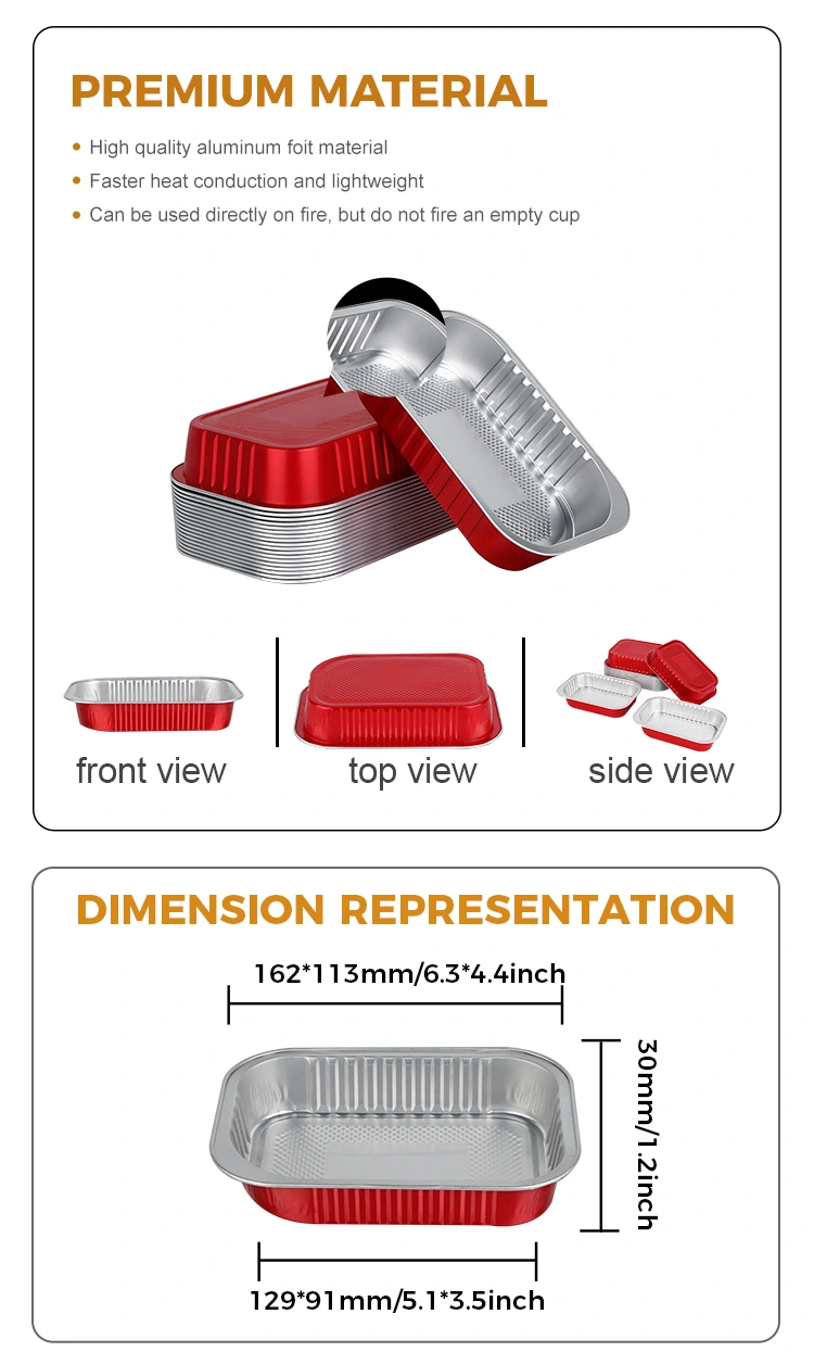 -Les nouveaux conteneurs en papier d'aluminium carrés rouges jetables Yunchu sont fabriqués à partir de papier d'aluminium primaire de qualité alimentaire. Il a subi de nombreux tests de sécurité et ne contient ni métaux lourds ni additifs nocifs. Cela garantit qu’il n’y a aucune odeur ou résidu lorsque les aliments entrent en contact avec eux et qu’il est conforme aux normes de sécurité nationales.