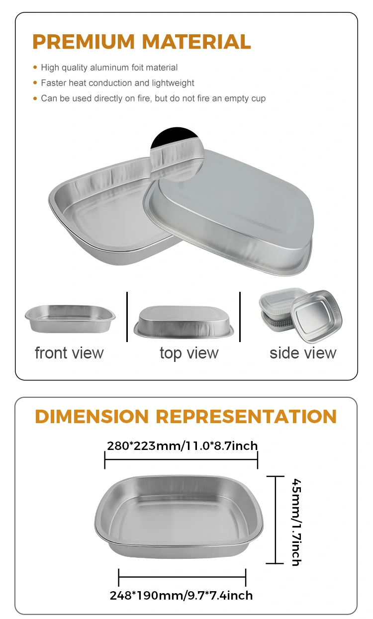 1. Les plus récents conteneurs jetables en papier d'aluminium carrés argentés à emporter pour la restauration Yunchu ont des propriétés d'isolation exceptionnelles, garantissant que les aliments restent chauds lors de la livraison. La conception scellée retient efficacement l'humidité et l'arôme, rétablissant le goût et la saveur frais et juteux des aliments tels qu'ils étaient lors de la cuisson.