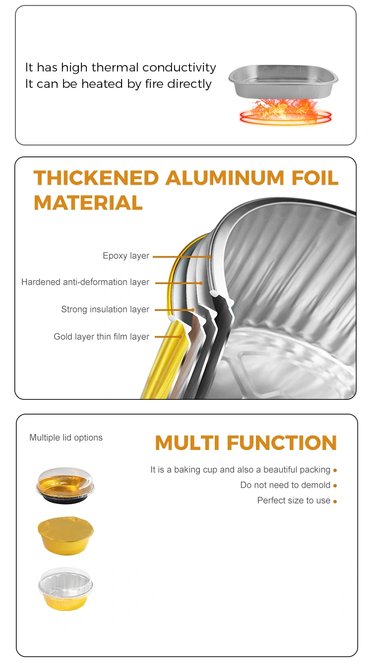 2. Ces conteneurs de stockage de nourriture à emporter en papier d'aluminium argenté utilisent une feuille d'aluminium de qualité alimentaire conforme aux normes nationales, ils ont subi un contrôle de qualité strict et aucune substance nocive n'est libérée. Il peut contenir en toute sécurité divers ingrédients, notamment des repas acides et huileux. Son utilisation est totalement sans souci.