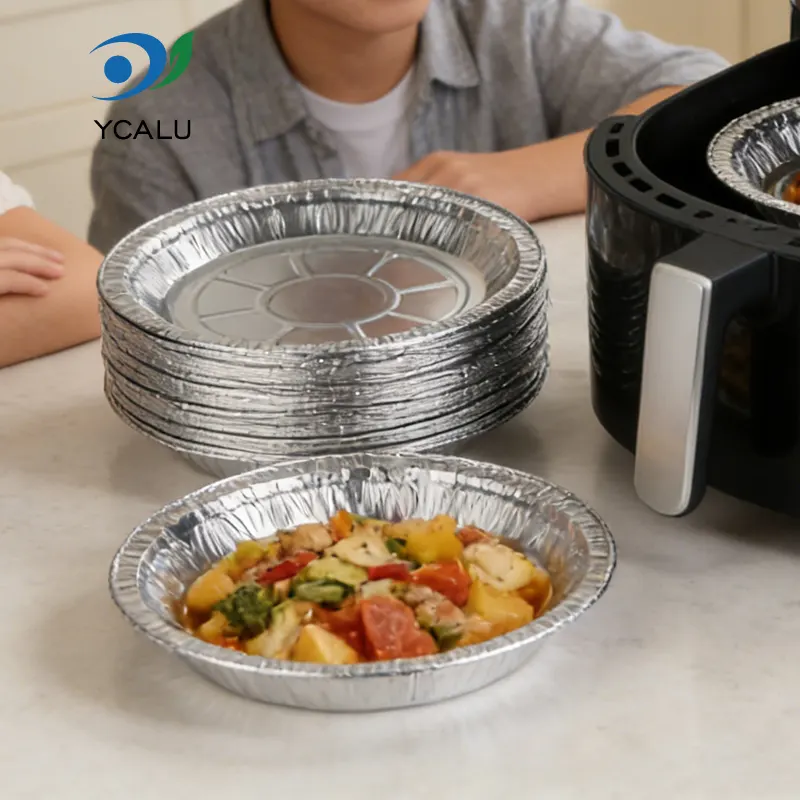 • Récipients alimentaires argentés de nourriture de papier d'aluminium de friteuse à air de disque jetableRécipients alimentaires argentés de nourriture de papier d'aluminium de friteuse à air de disque jetable