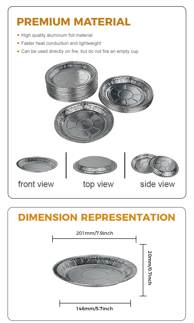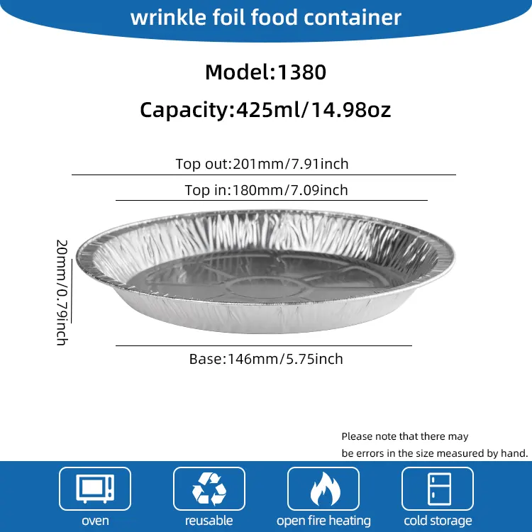 Le récipient en papier d'aluminium argenté pour friteuse à air à disque jetable en papier d'aluminium Yunchu est à la fois hygiénique et respectueux de l'environnement. Il est fait de matériaux épaissis et résistants à la corrosion qui ne se déforment pas facilement et peuvent être en contact direct avec les aliments. Il n'a pas peur des températures élevées, n'est pas brûlé, n'est pas brûlé et n'est pas facile à jeter. Il peut résister à des températures élevées jusqu'à 250 °C et convient à diverses méthodes de cuisson telles que la cuisson à haute température, le four et le barbecue, il n'y a donc pas lieu de s'inquiéter. Plusieurs spécifications sont disponibles pour répondre à des besoins diversifiés de cuisson de différentes tailles, vous permettant de répondre facilement aux diverses exigences de production alimentaire.