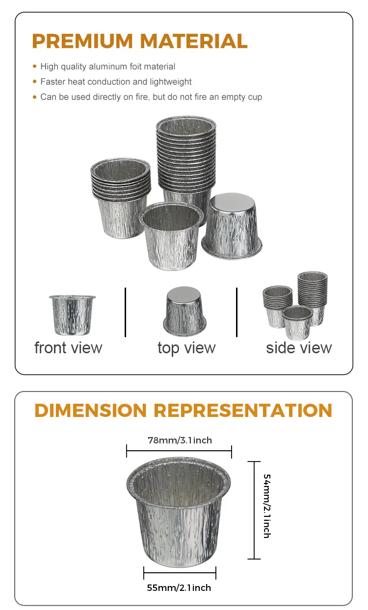 Le récipient en papier d'aluminium argenté jetable pour tasse à gâteau ronde du fabricant de papier d'aluminium Yunchu est fabriqué à partir de papier d'aluminium de haute pureté de qualité alimentaire. Il a subi des tests de qualité stricts et n'a aucune odeur ni additifs nocifs. Le contact direct avec les ingrédients offre plus de tranquillité d'esprit, protégeant chaque bouchée de douceur et de santé. Le processus de feuille d'aluminium épaissi crée un corps de tasse résistant qui n'est pas facile à déformer ou à casser. Il peut être utilisé pour diverses pâtes à gâteaux, mousses, puddings et autres ingrédients. Il peut résister à des températures élevées jusqu'à 250 °C et à des températures basses jusqu'à -20 °C pour les fours, réfrigérateurs, friteuses à air et autres appareils. Il peut être bien adapté à la cuisson, à la réfrigération et à la congélation. Il n'est pas nécessaire de remplacer la boîte en aluminium et il n'y a pas trop d'étapes fastidieuses. Le design rond classique, le corps de la tasse est rond et lisse, et le lustre métallique argenté assorti ne nécessite aucune décoration supplémentaire. Il peut être servi directement après la cuisson et aura un effet de présentation digne d'un magasin de desserts. L'embouchure de la tasse est finement courbée, ce qui la rend douce au toucher et ne vous gratte pas les mains. Il évite que la pâte ne coule au moment du versement et facilite le démoulage.