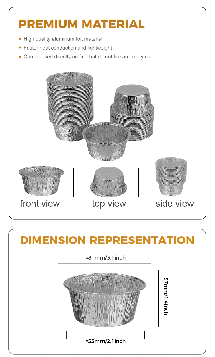 Ce plateau à gâteaux rond jetable en aluminium argenté présente des formes plissées qui le rendent facile à manipuler et convient à la préparation de diverses spécialités, qu'il s'agisse de gâteaux, de puddings ou d'œufs cuits à la vapeur. Le récipient est fabriqué en papier d'aluminium de haute qualité avec une surface lisse et délicate et est facile à nettoyer. De plus, ce matériau présente également une bonne résistance aux hautes températures et peut supporter des températures supérieures à 200°C, garantissant ainsi une cuisson sûre des aliments.