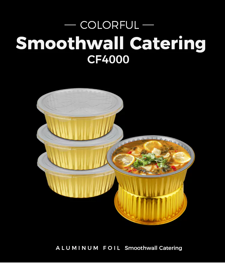 Les conteneurs jetables ronds en papier d'aluminium doré de grande capacité de papier d'aluminium Yunchu sont fabriqués à partir d'un matériau de base en alliage d'aluminium 8011 de qualité alimentaire grâce à un processus de laminage de précision et de formage monobloc. La paroi extérieure du récipient est lisse et peut entrer directement en contact avec les aliments en toute sécurité. Même lorsqu'il contient des aliments acides ou huileux, il peut maintenir la stabilité du matériau et ne laisser aucun résidu d'odeur.