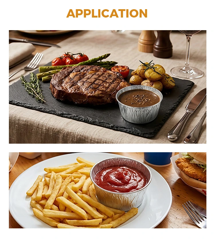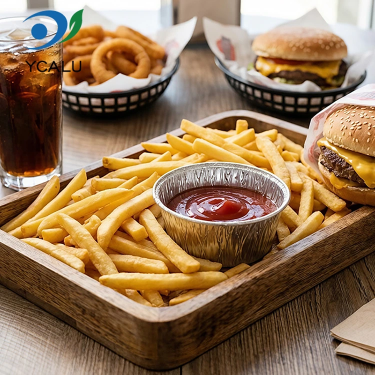 Fournisseur de papier d'aluminium Yunchu Friteuse à air à sauce ronde jetable Récipient en papier d'aluminium argenté Matériau de papier d'aluminium de qualité alimentaire, sans odeur, sans résidu de métaux lourds, conforme aux normes de contact alimentaire, de haute pureté et de propriétés chimiques stables. Même s'il est rempli de sauces acides et chauffé à haute température, il ne dégagera pas de substances nocives et vous pourrez vous sentir totalement en sécurité au contact direct des aliments. Le produit a passé la certification de qualité alimentaire de la FDA et suit strictement les normes liées à la FDA 21 CFR. Après des tests de migration professionnels et une détection de métaux lourds, la teneur en substances nocives telles que le plomb et le cadmium est bien inférieure au seuil de sécurité et les qualifications sont complètes. Que ce soit pour un usage domestique ou commercial, vous pouvez choisir en toute tranquillité. Utilisez-le pour répartir les sauces pour mariner les viandes, les vinaigrettes pour les légumes et les plats au vinaigre pour tremper les boulettes. Les portions sont justes sans gaspillage. Il peut également éviter le transfert d’odeurs et peut être soigneusement conservé au réfrigérateur sans prendre de place. Les commerçants de plats à emporter l'utilisent pour conserver les sauces, scellées et étanches, et livrées proprement aux clients. Qu'il s'agisse de ketchup, de sauce chili douce ou de sauce au sésame épaisse, il n'y aura aucune gêne en cas de fuite et de souillure des aliments. Même pour les pique-niques en plein air et le camping, vous pouvez en emporter quelques-uns avec vous et les utiliser pour contenir des trempettes. Il est léger et ne prend pas de place. Vous pouvez le jeter directement après utilisation. Vous n’êtes pas obligé de ramener chez vous un tas de conteneurs sales. Il s’agit principalement de facilité et de sans problème.