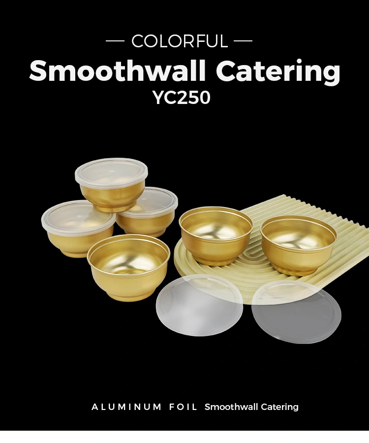 Usine de fabrication de papier d'aluminium Yunchu, petits bols ronds en or jetables en papier d'aluminium, un récipient en aluminium de type bol de forme unique, ce récipient est destiné à l'emballage, aux repas précuits, au riz, aux nouilles, etc. Il est plus pratique que les plats à emporter, plus économique que les repas au restaurant et plus savoureux que les shakes/biscuits de remplacement de repas. Les bols emballés individuellement ne sont pas sujets aux dommages cutanés, faciles à transporter, fabriqués à partir de matériaux sélectionnés robustes et durables, emballés individuellement, stérilisés sous vide, faciles à ouvrir et à manger, capables de conserver la fraîcheur pendant la cuisson à 121°C. Le bol original ne peut pas être chauffé au micro-ondes. Disponibles en différentes spécifications, empilables pour le rangement, les bols en aluminium peuvent être empilés pour garder la cuisine bien rangée et organisée. Différentes tailles répondent à différents besoins d'emballage : un bol à la fois est parfait.
