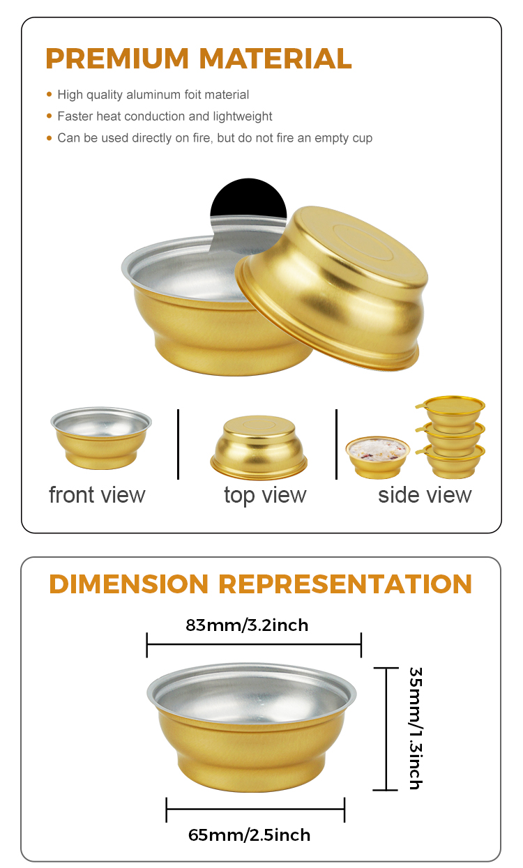Plusieurs options de taille : vous pouvez choisir la taille du petit bol doré selon différents scénarios de restauration pour répondre à différents besoins. Il peut également s'adapter à différentes tailles de produits pour les usines alimentaires, garantissant ainsi que la bonne taille peut être trouvée pour chacun.
