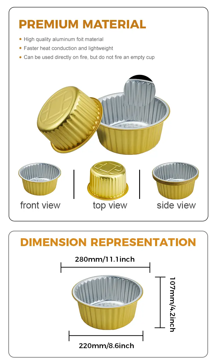 • Rénits en aluminium rond doré jetable jetableRénits en aluminium rond doré jetable jetable