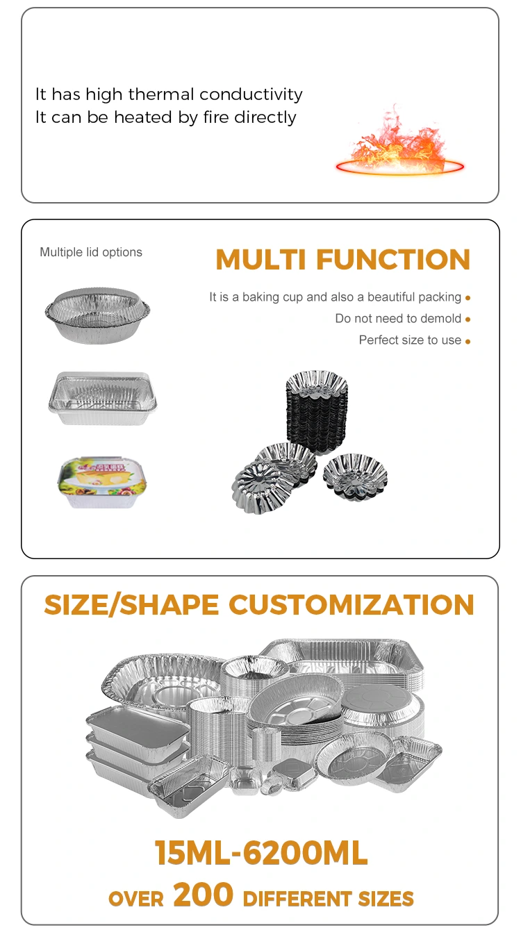 Produits en gros, matériau en papier d'aluminium, sûr et non toxique, en aluminium en aluminium matériau de qualité alimentaire, avec une bonne conductivité thermique, des utilisations sûres et non toxiques sont riches et diverses, afin que vous puissiez l'utiliser plus à l'aise, facile à éliminer la moisissure lors de l'utilisation de température à haute Au revoir à la peine de laver le pot et de protéger facilement le pot, d'isoler les taches d'huile après utilisation, n'a pas besoin d'être nettoyé, le fond lisse n'est pas facile à brûler et à respecter le fond, les aliments antiadhésifs sont faciles à cuire, le fond est lisse, il peut résister à -20 ° C ~ 300 ° C, peut être chauffé par un flamme ouverte et le moule est même chauffé.