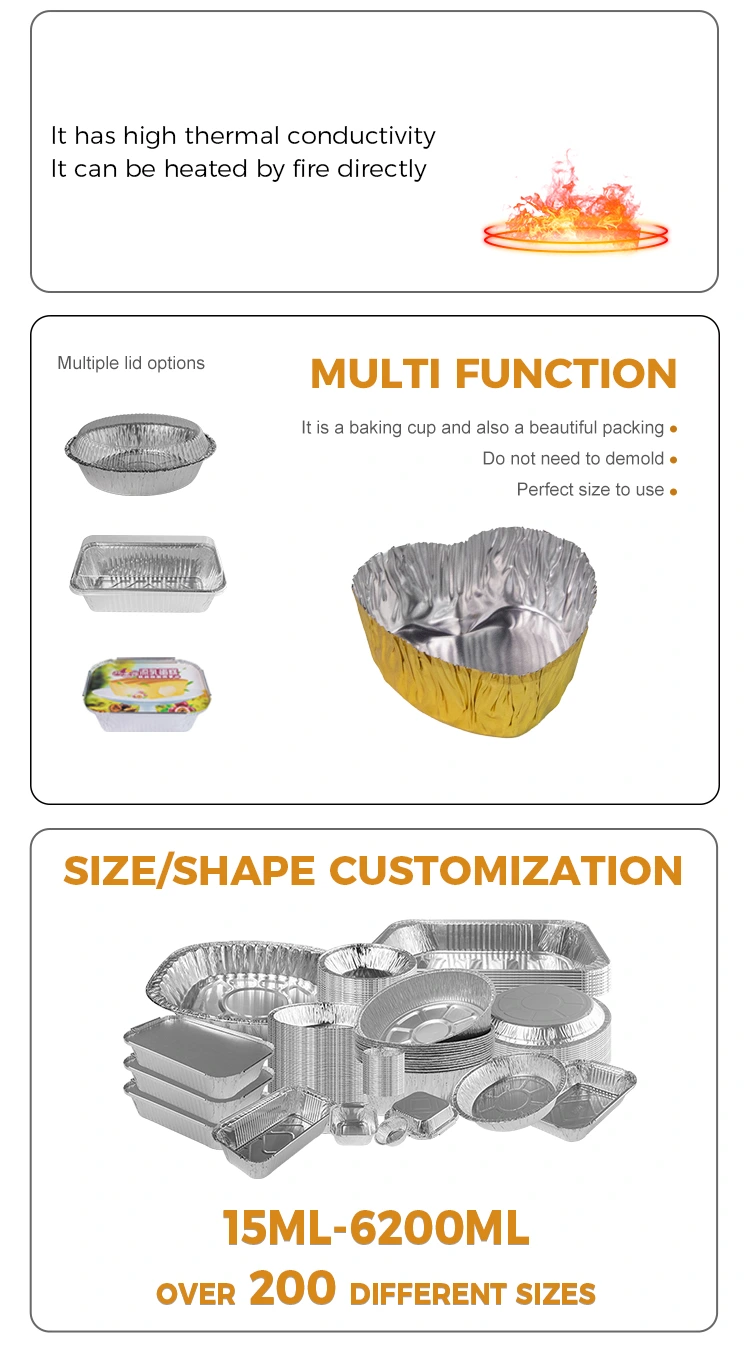 Ce petit récipient en feuille d'argent en forme de cœur convient pour emballer une variété de petits produits de boulangerie tels que les macarons, les biscuits et les tartes. Nous contrôlons strictement chaque étape de production en termes de contrôle de la qualité pour nous assurer que tous les produits répondent aux normes de sécurité nationales et avons réussi la certification ERP allemande, la certification EU SGS et la certification ISO9001.