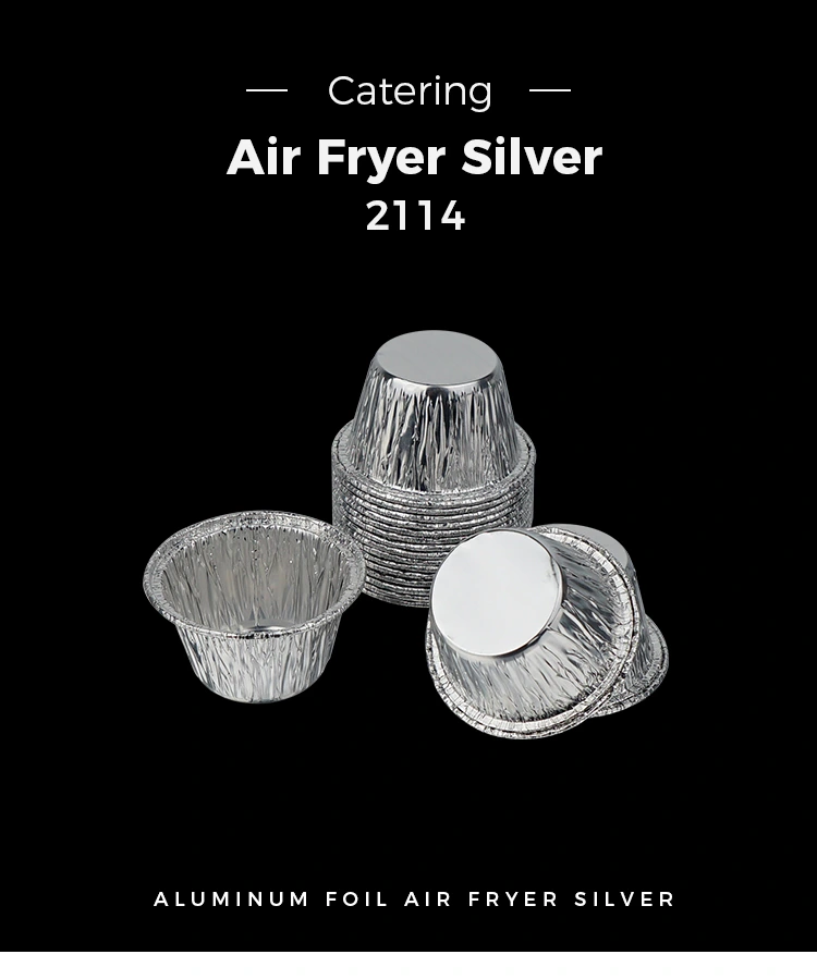 • Récipients alimentaires argentés de papier d'aluminium de friteuse d'air de petit gâteau rond d'une foisRécipients alimentaires argentés de papier d'aluminium de friteuse d'air de petit gâteau rond d'une fois