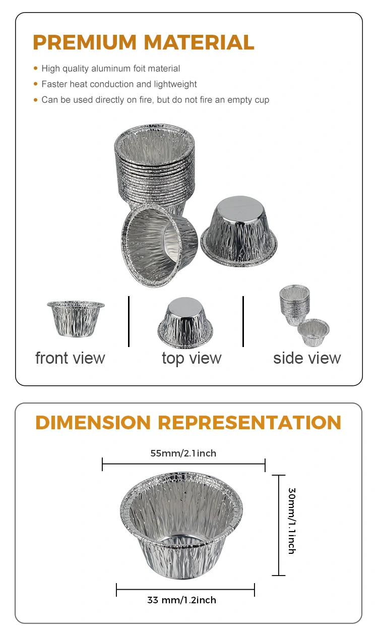 Pour les applications au four domestique, vous pouvez utiliser des gobelets en aluminium pour préparer des mini-gâteaux et des puddings sains que vos enfants adorent manger. Il n'est pas nécessaire de nettoyer la plaque à pâtisserie et elle est facile à nettoyer après le repas.