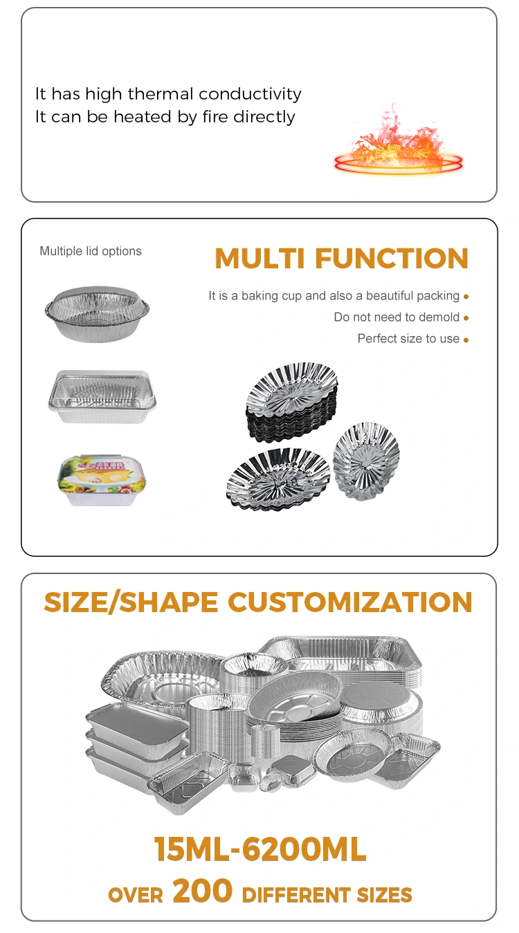 Yunchu Aluminium Foil Fournisseur de la dentelle de dentelle à la gueule dentelle en aluminium en aluminium en aluminium Contaiteur alimentaire, conception de carrosserie à gobelets non glissée, carrosserie avec une texture anti-glissement, augmenter le frottement, empêcher le glissement. La conception de la bouche en dentelle peut être pliée et stockée, ce qui est pratique et pratique. Conception multiple de grande capacité, utilisation ponctuelle, pas besoin de nettoyer et de larges gamme d'utilisations, adaptée aux tartes aux œufs au four, aux gâteaux, aux chips de jaune d'oeuf, aux gâteaux de bol et à d'autres spécialités. Les plateaux de tarte aux œufs des fournisseurs d'aluminium Yunchu ont réussi la certification allemande ERP, la certification UE SGS et la certification du système de gestion de la qualité ISO9001. Nous utilisons des matériaux de qualité alimentaire sains et respectueux de l'environnement pour assurer la sécurité et la non-toxicité de nos produits. Ces matériaux sont non seulement renouvelables mais également respectueux de l'environnement, reflétant nos exigences strictes en matière de sécurité alimentaire et notre engagement à poursuivre des normes de haute qualité pour nos produits globaux.