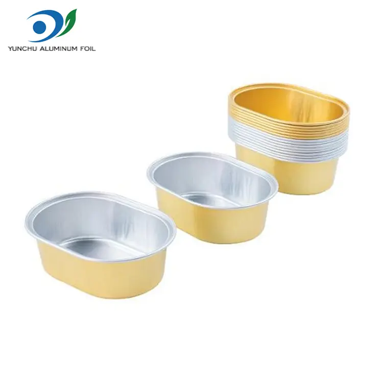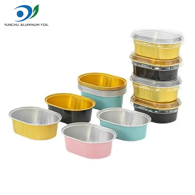 Le modèle de conteneurs ovales en papier d'aluminium à parois claires de haute qualité de l'usine chinoise de papier d'aluminium Yunchu est le E068, avec un diamètre supérieur de 76*56 mm (2,9*2,2 pouces), un diamètre inférieur de 66*45 mm (2,5*1,7 pouces) et une hauteur de 26 mm (1 pouce). Le volume est d'environ 68 millilitres (2,3 onces). Il s'agit d'une boîte à gâteaux de forme ovale pouvant être équipée d'un couvercle transparent en PET. Il convient à la cuisson d'aliments (tels que des petits puddings, des mini gâteaux, etc.) et aux petites applications alimentaires. Les conteneurs ovales en papier d'aluminium à parois claires sont fabriqués sur mesure avec un matériau en papier d'aluminium de qualité alimentaire, multifonctionnels dans un seul moule, formés par estampage d'une seule pièce et disponibles en plusieurs couleurs pour la personnalisation, qui peuvent répondre aux besoins de chaque client.