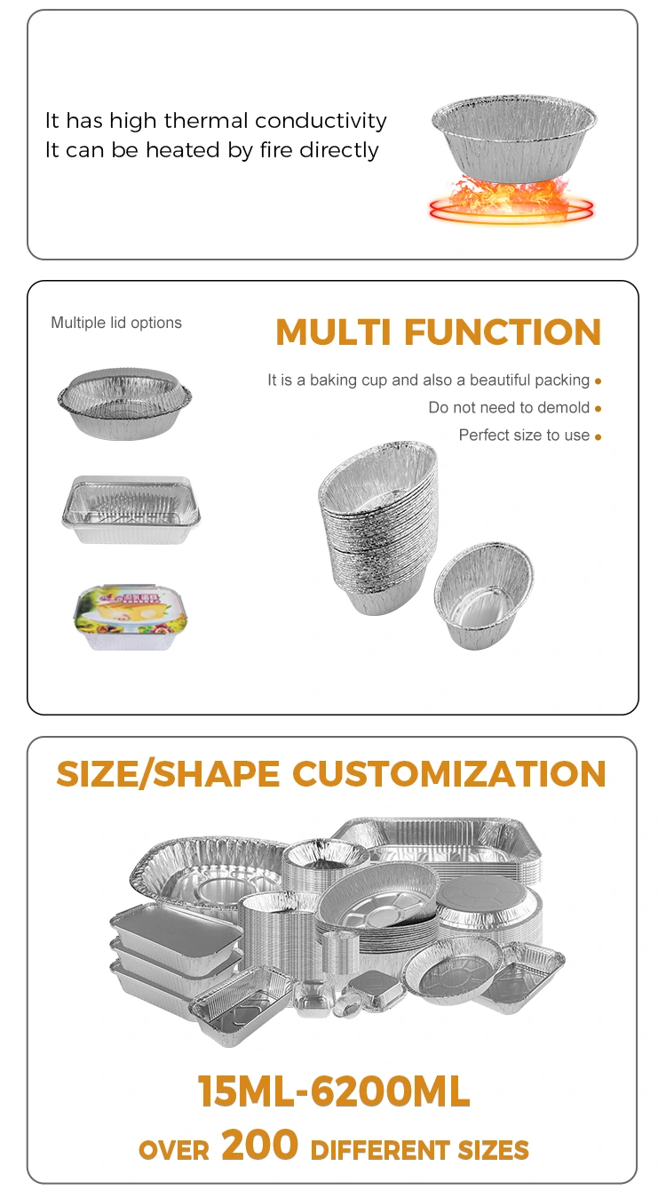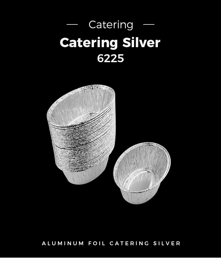 Fournisseur de papier d'aluminium Yunchu Gâteau ovale cuit à la vapeur Récipient alimentaire en papier d'aluminium argenté Le modèle 6225 est un récipient en papier d'aluminium qui peut être utilisé à des fins commerciales et domestiques, qui peut débloquer davantage d'utilisations, telles que des œufs au four, des huîtres au four, des tartes aux œufs, des gâteaux, etc., et peut également être utilisé comme sauces, trempettes, petits condiments et échantillons de dégustation de pâtisserie, en utilisant de l'aluminium argenté de qualité alimentaire 8011. matériau en aluminium, moulage intégral, le mur est aussi lisse qu'un miroir, à la fois beau et pratique, la conception de l'ourlet ne vous fait pas mal aux mains et une variété de spécifications et de tailles répondent à vos différents besoins.