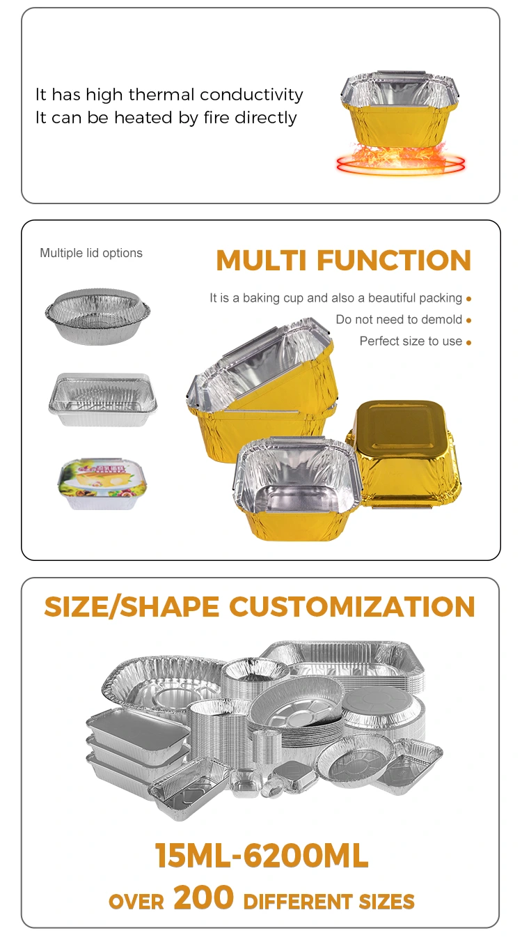 Le récipient en papier d'aluminium en fourrage carré fourni par le fournisseur d'aluminium Yunchu en aluminium est un récipient en aluminium de cuisine qui convient à la fabrication de gâteaux carrés, à des biscuits à la cuisson, aux grillades et à la cuisson dans une friteuse à air. Non seulement il a une capacité modeste (95 ml) qui peut facilement contenir la plupart des aliments, mais il est également livré avec un couvercle en feuille de compagnie entièrement transparent pour garder efficacement la poussière et d'autres contaminants. La conception de surface lisse rend les conteneurs faciles à empiler et à stocker, en économisant un espace de cuisine précieux.
